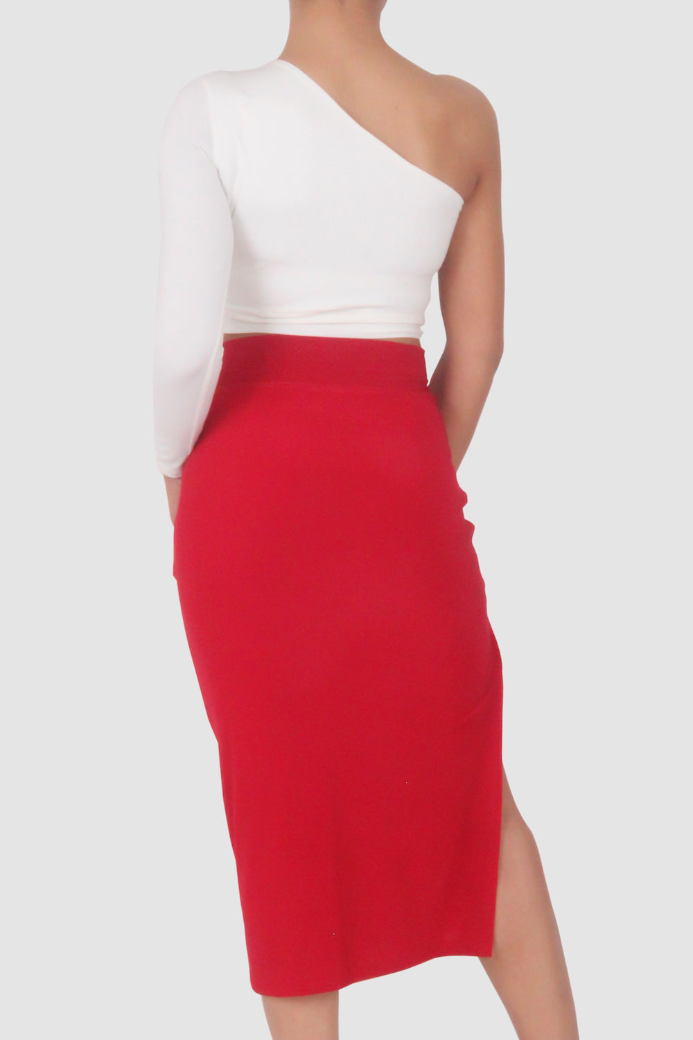 One Shoulder Tango Set-Dress / White I Red