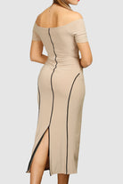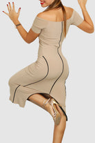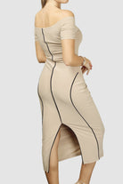 Back S-Line Dress / Beige - Black