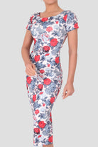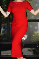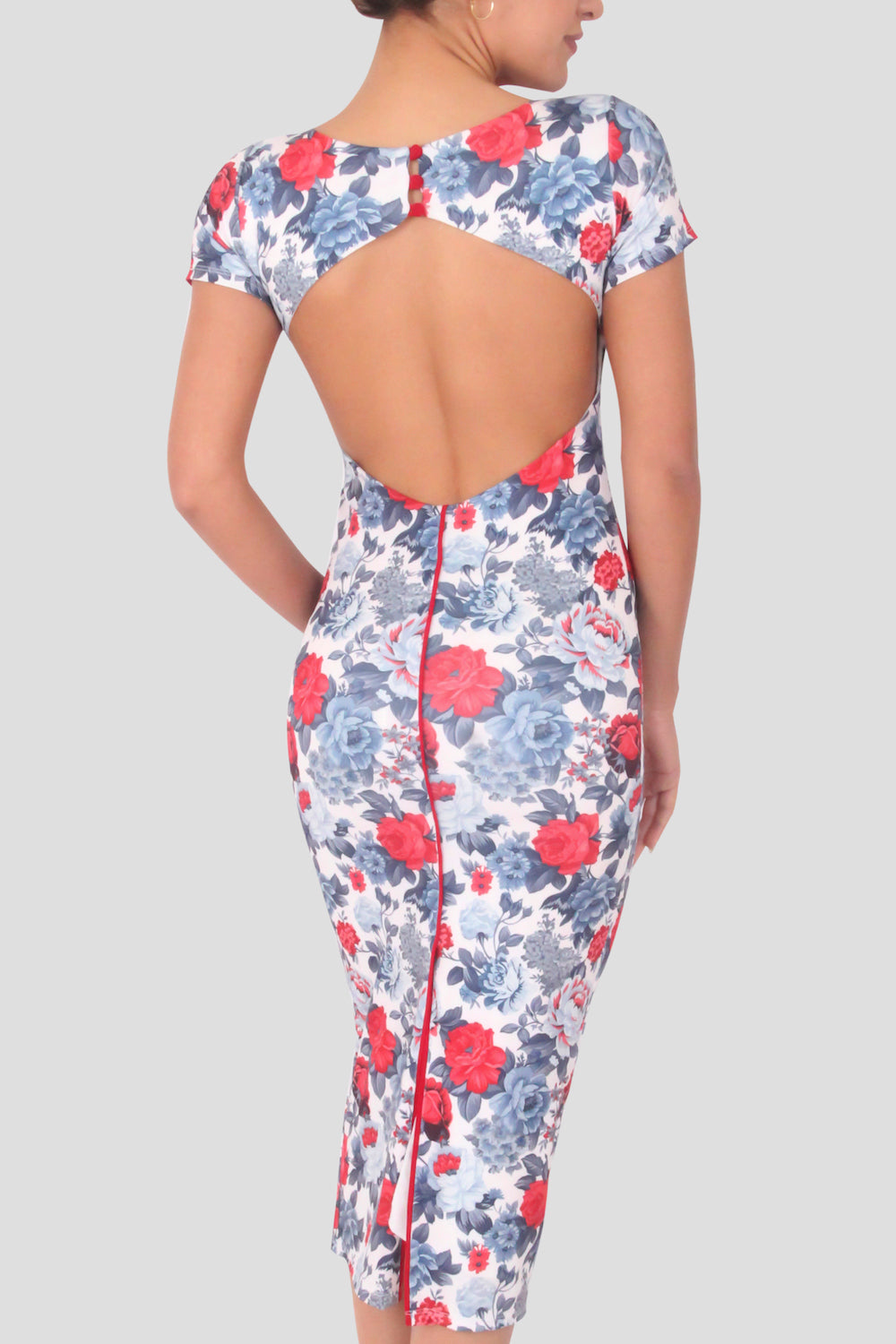Back Button Dress / Coral I White / Line Collection