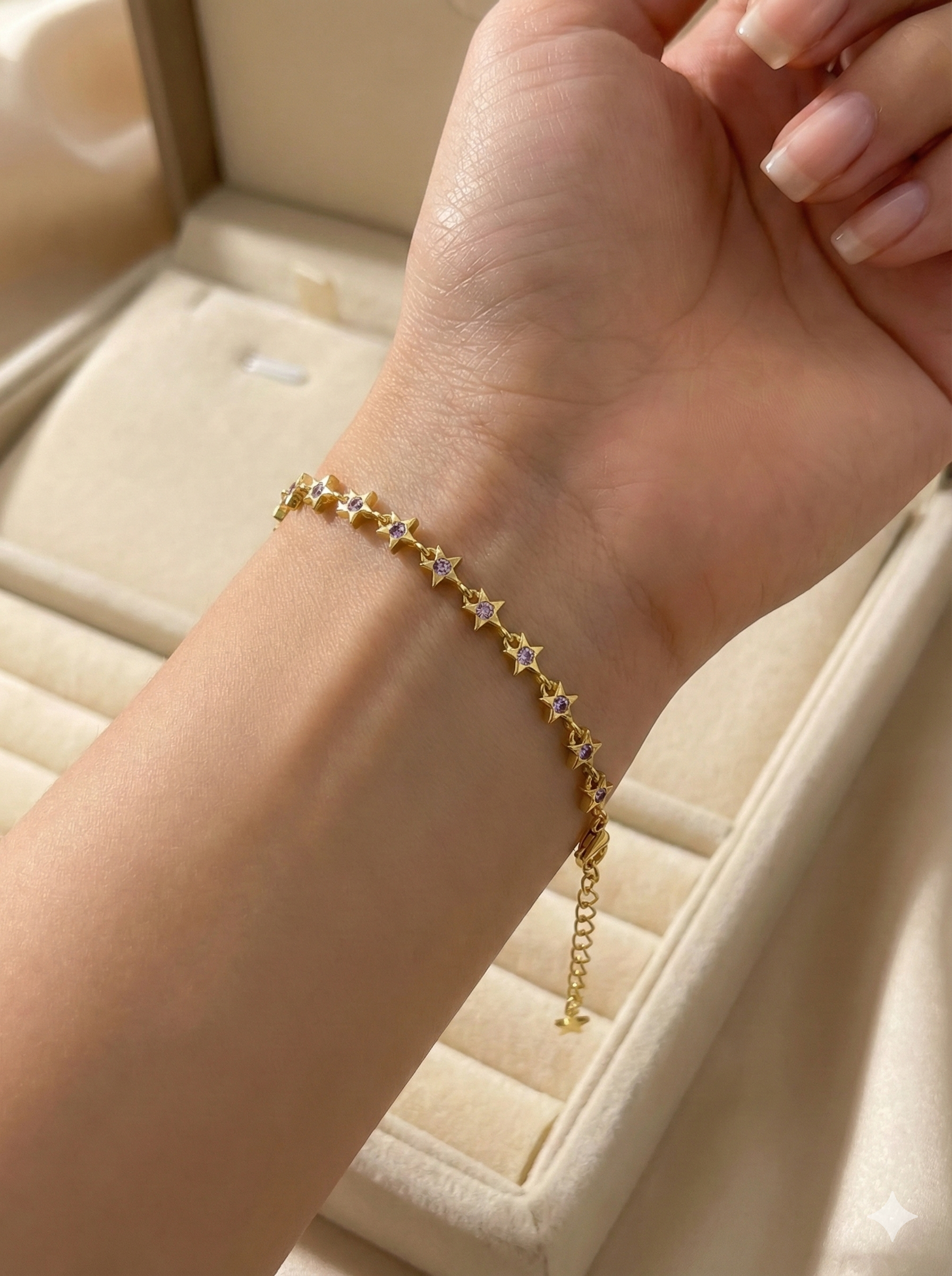 925 Sterling Silver Star Tennis Bracelet – Gold Plated CZ Star Chain Bracelet, Dainty Sparkling Jewelry