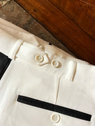 Our brand-new lined white and black pants are an absolute necessity, you will wear these again and again. A traditional design and timeless selection that easily matches with a wide range of shirts and vests. Pants feature 2 front pockets and 2 back pockets, a hook, and 1 button closure pants wide-leg fit that allows ease of movement and knee bending.