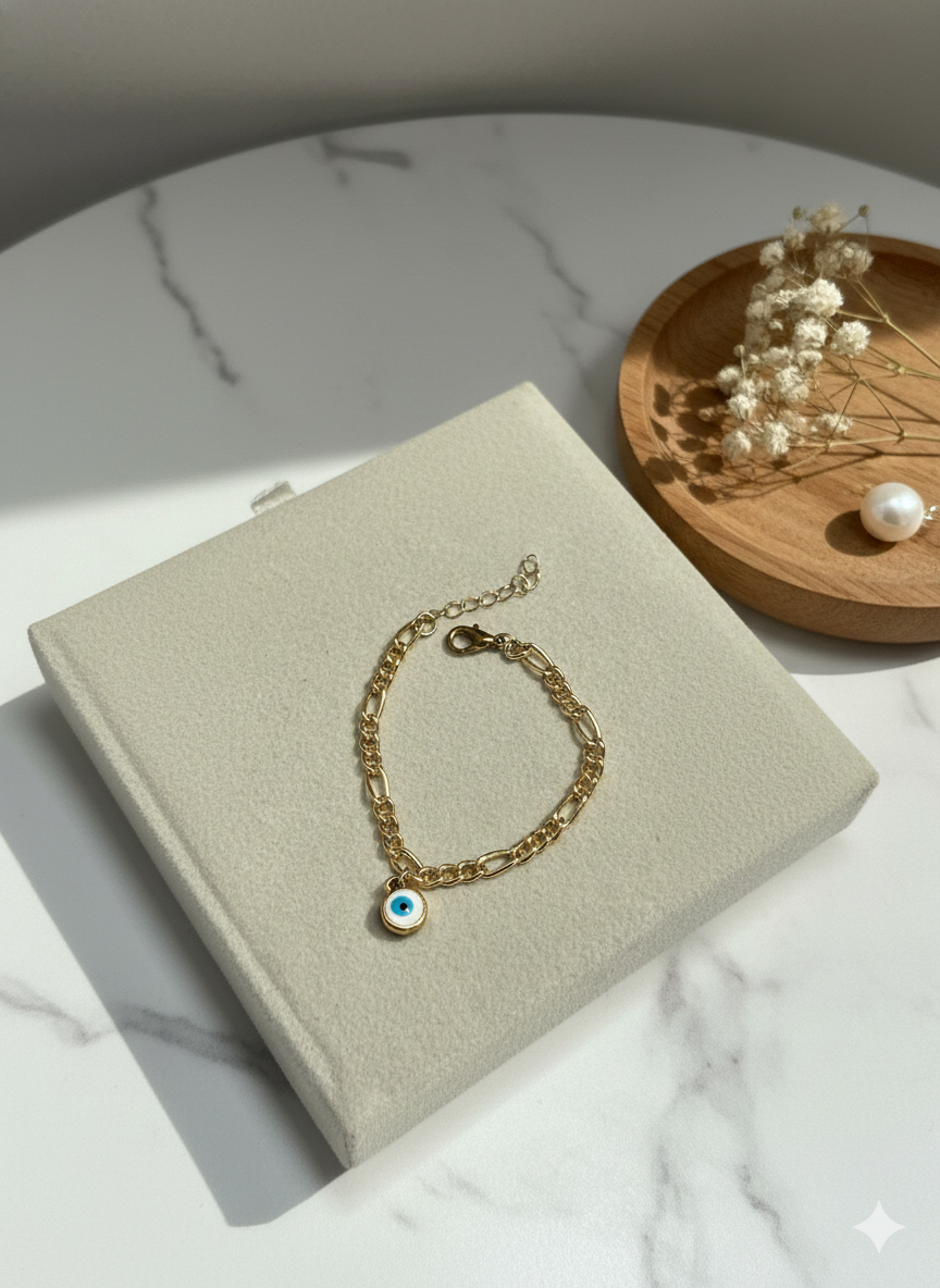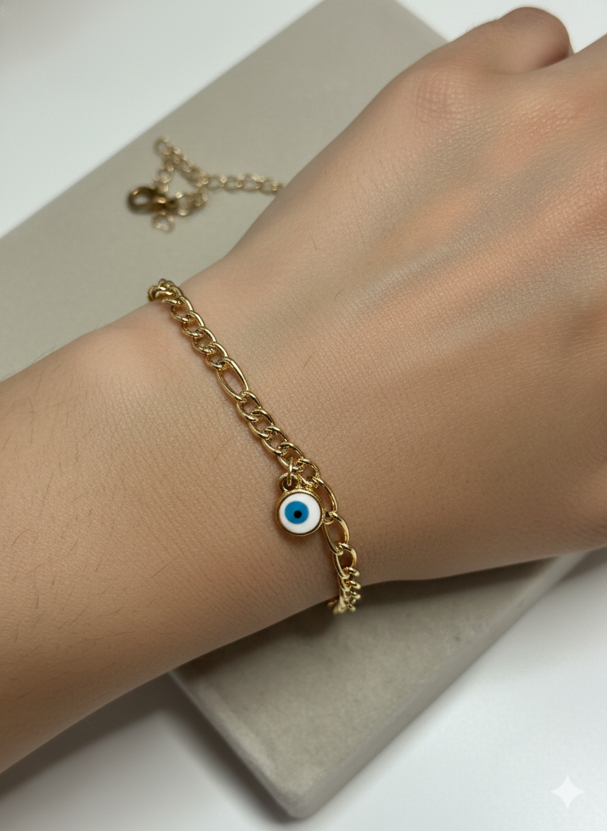 Gold Chain Evil Eye Bracelet – Waterproof Stainless Steel, Non-Tarnish Blue Eye Charm Bracelet for Everyday Protection