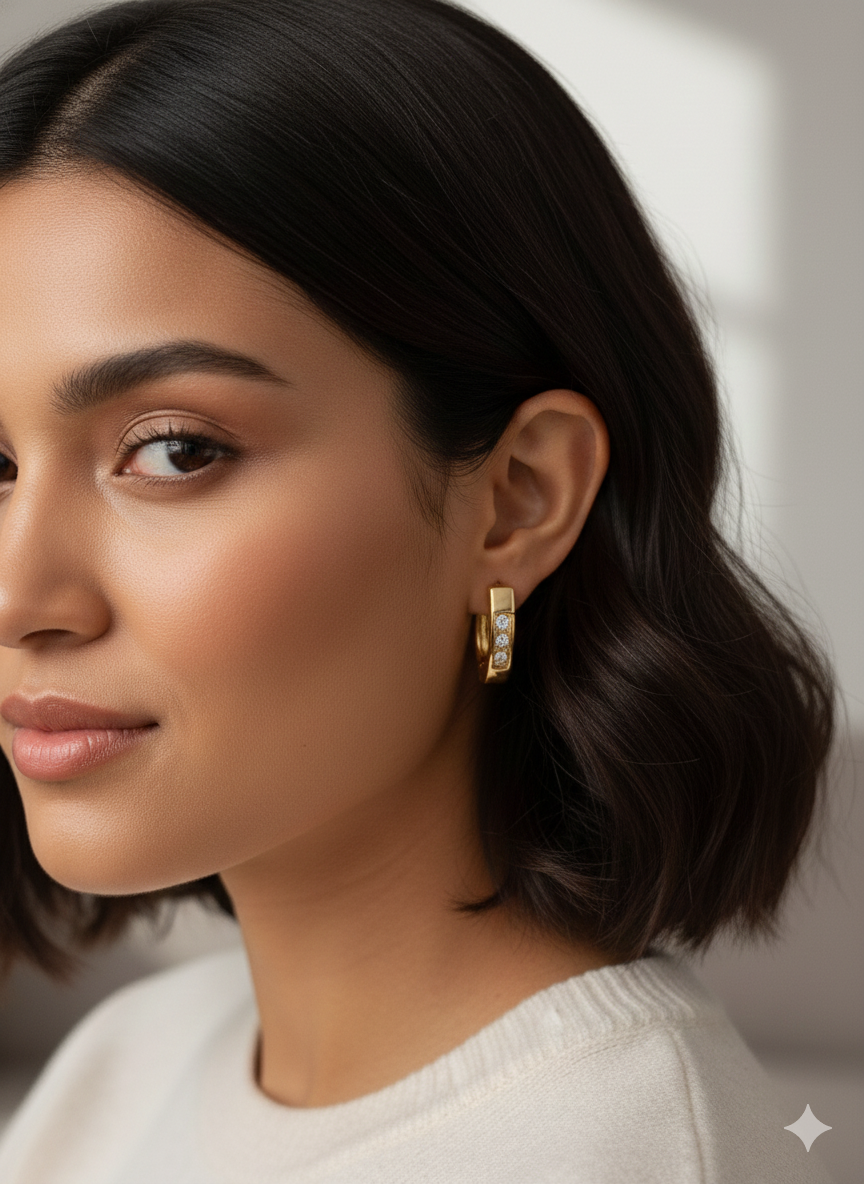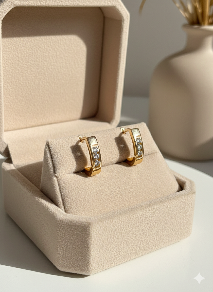 Elevate your everyday style with these Gold Huggie Hoop Earrings, featuring a row of sparkling zircon stones set into a sleek, modern design. Crafted from premium non-tarnish stainless steel, these hoops deliver timeless elegance, durability, and effortless shine.