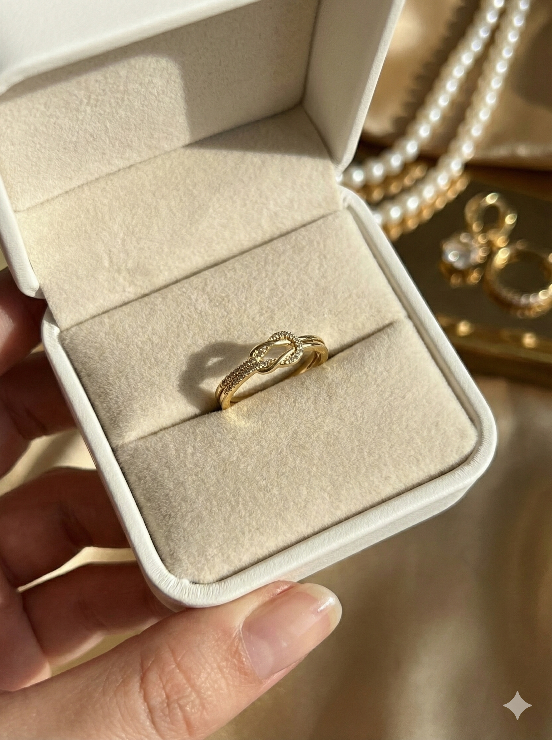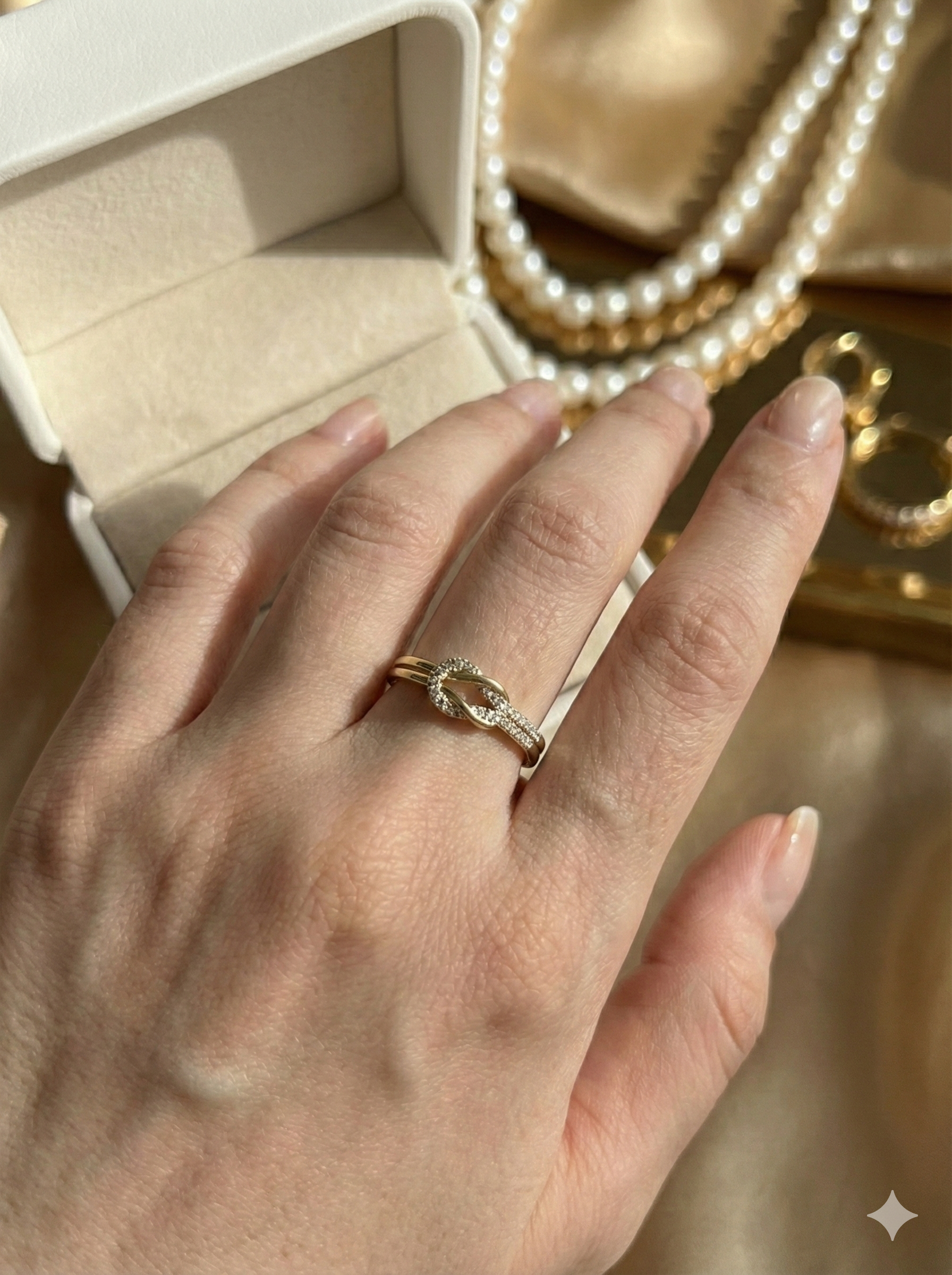 Gold Knot Ring | 18K Gold Plated Dainty Infinity Ring | Pavé Crystal Knot Band | Waterproof Jewelry