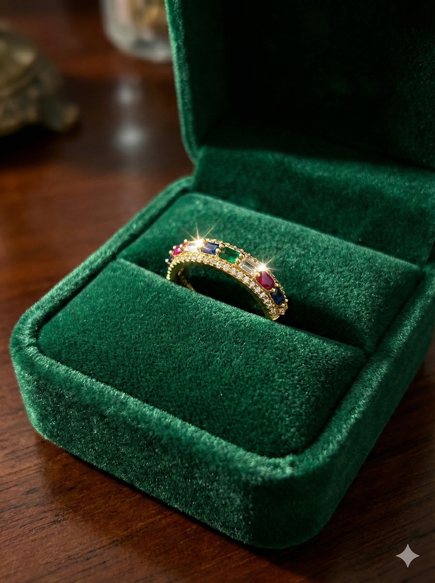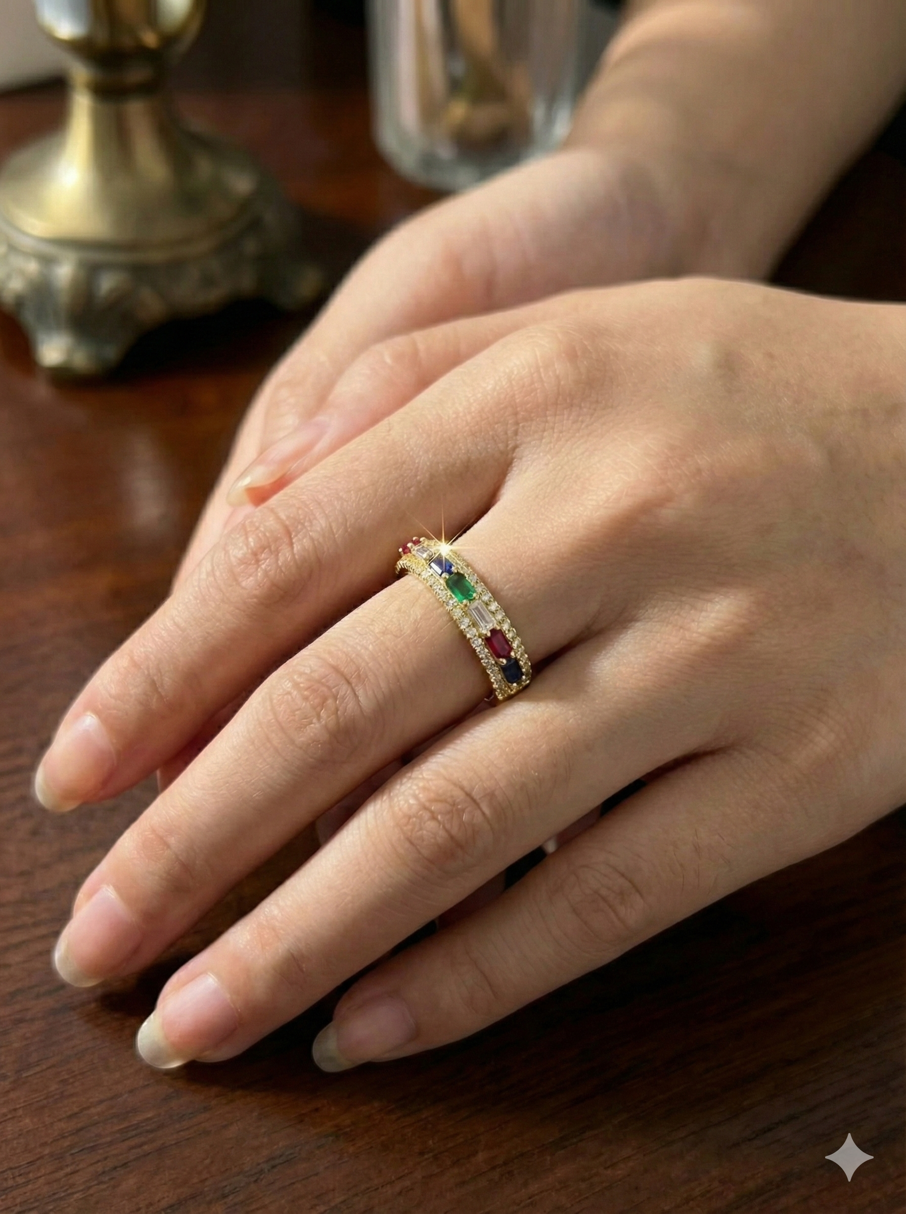 This golden rainbow ring adds a chic pop of color to any outfit — stylish, timeless, and full of personality 💛🌈✨
