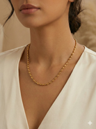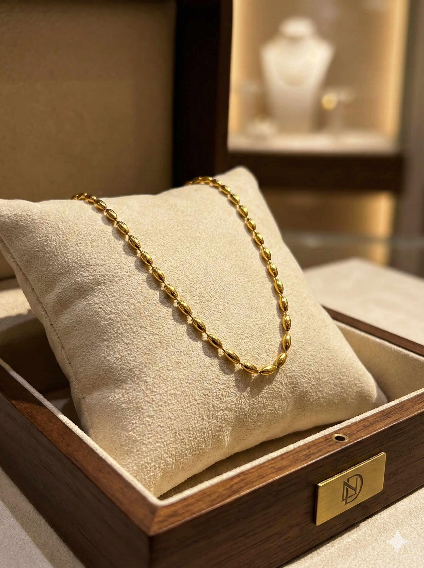 Gold Plated Stainless Steel Saturn Bead Chain Necklace – Oval Rice Bead Design, Waterproof & Tarnish-Resistant Jewelry