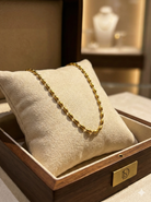 Gold Plated Stainless Steel Saturn Bead Chain Necklace – A sleek and elegant design featuring oval rice-shaped beads that create a smooth, reflective shine. Modern, minimal, and timeless, this necklace is perfect for everyday wear or layering with your favorite pieces.