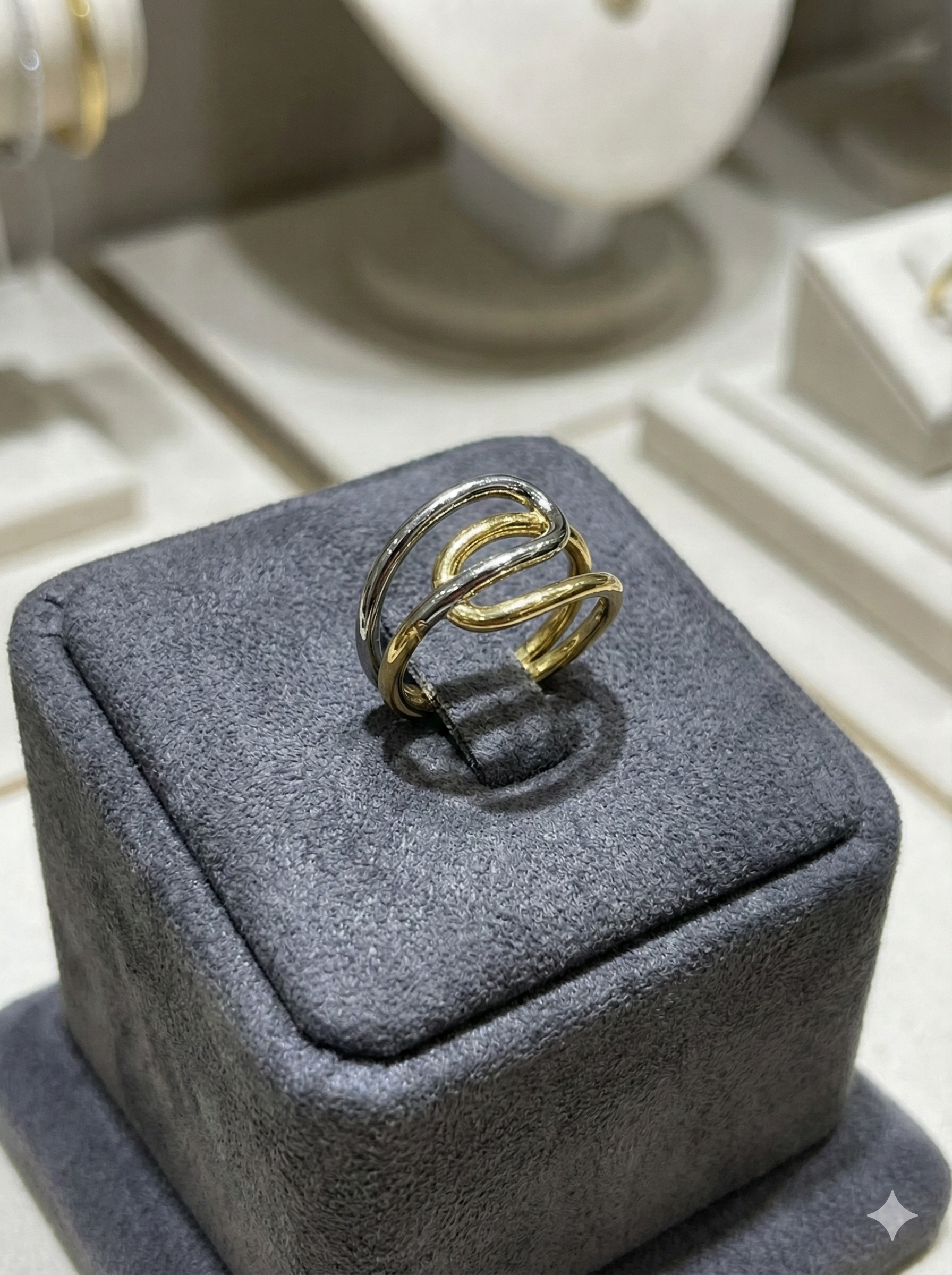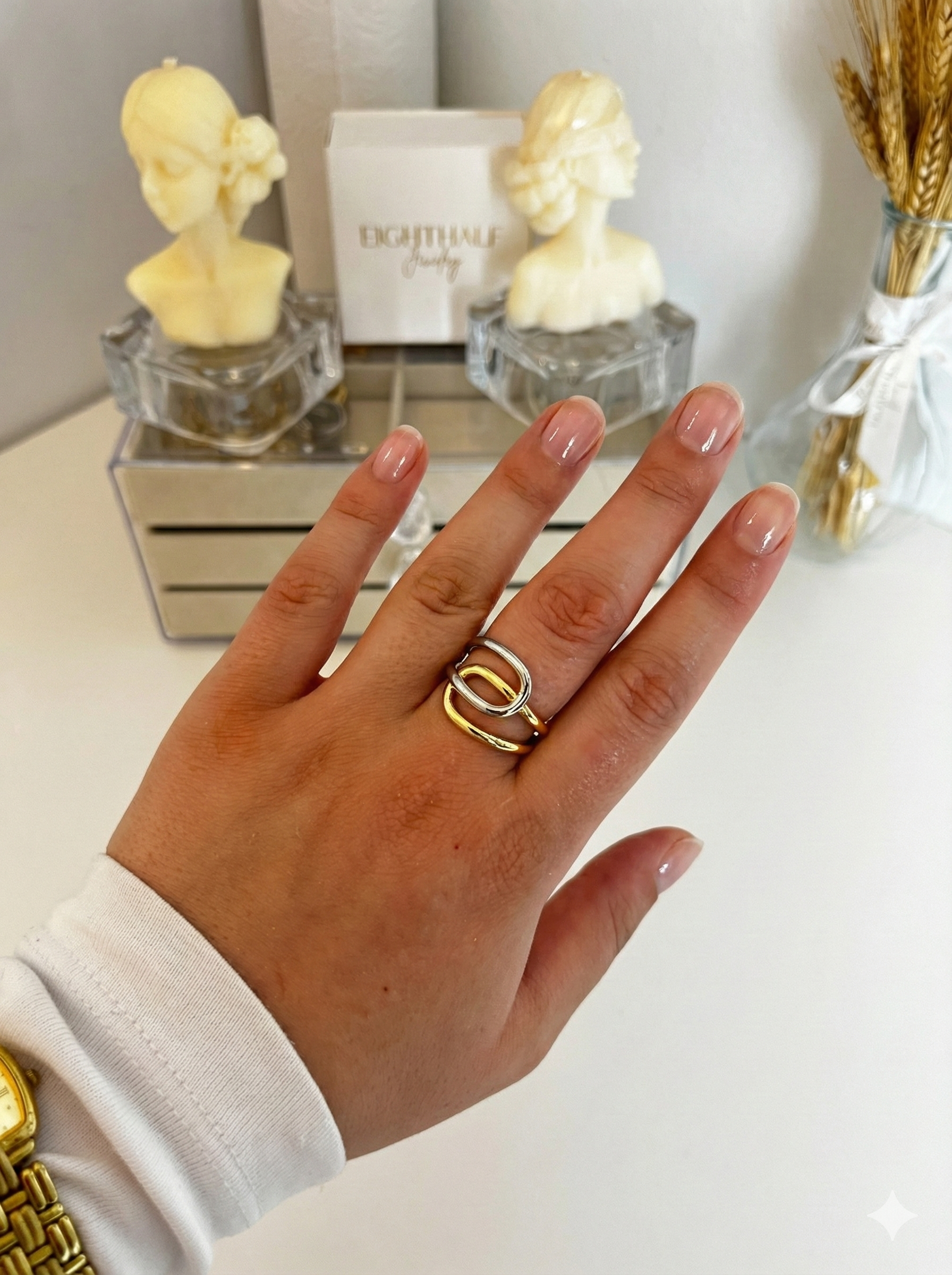 Gold & Silver Mixed Steel Ring – Adjustable Minimalist Two-Tone Statement Ring, 18K Gold Plated Stainless Steel Jewelry for Women
