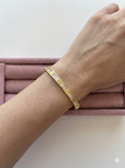 Gold Stainless Steel Baguette Stone Bracelet – Luxury Screw Detail Bangle – Waterproof & Tarnish-Free