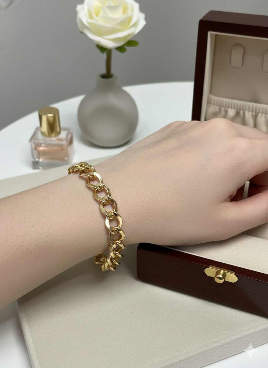 Elevate your style with this bold and elegant Chunky Gold Chain Bracelet, crafted from premium 316L stainless steel with a polished gold finish.