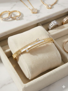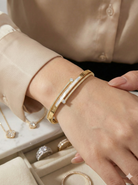 Celebrate elegance and love with this stunning Mother-of-Pearl Inlay Bracelet, crafted from high-quality gold stainless steel.