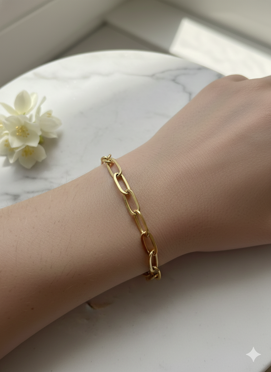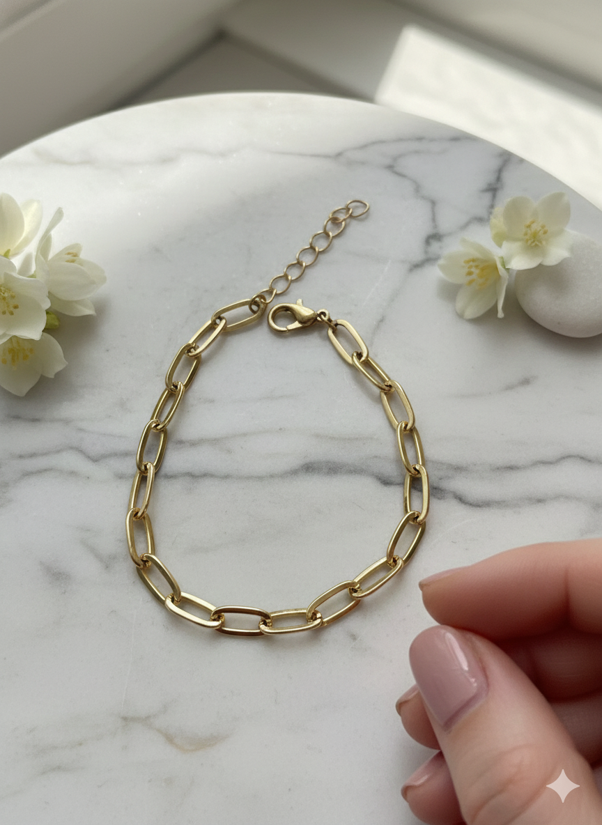 Minimal Gold Paperclip Chain Bracelet – Waterproof Stainless Steel, Non-Tarnish Dainty Bracelet for Everyday Wear