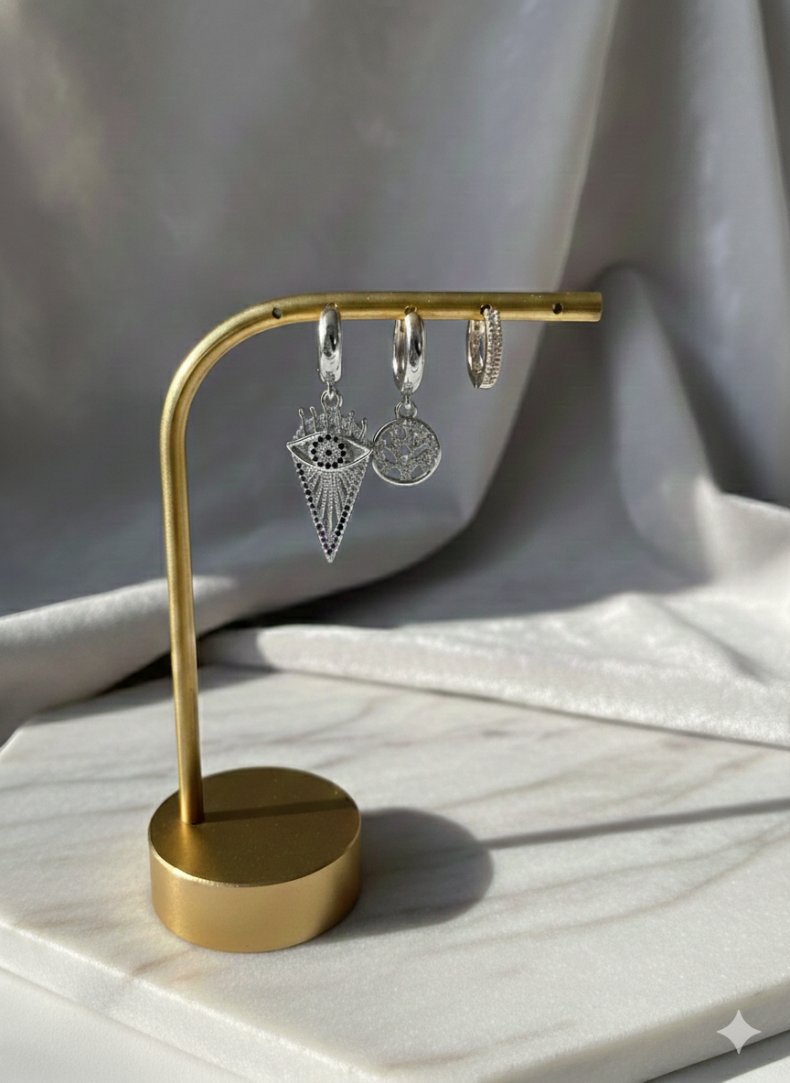 Crafted with high-quality stones and polished silver hoops, this set blends symbolic elegance with a modern statement look. Lightweight, hypoallergenic and perfect for stacking, these hoops elevate everyday outfits with mystical shine.
