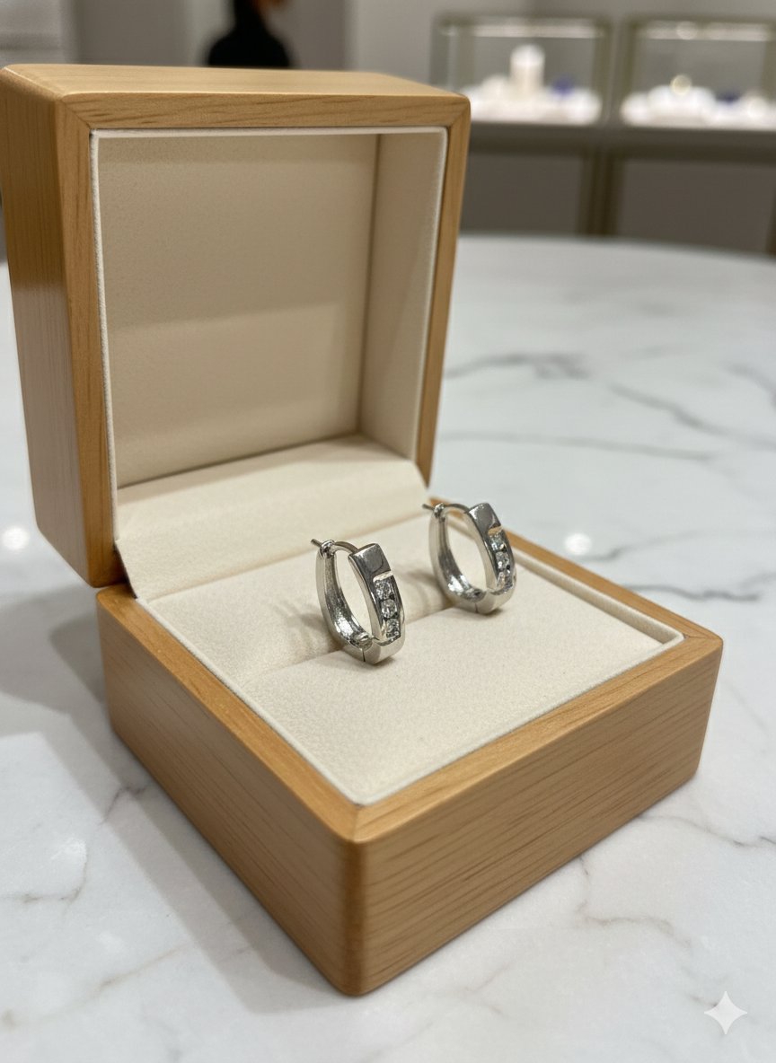 Silver Huggie Hoop Earrings with Zircon Stones – Non-Tarnish Stainless Steel, Elegant Minimalist Everyday Hoops