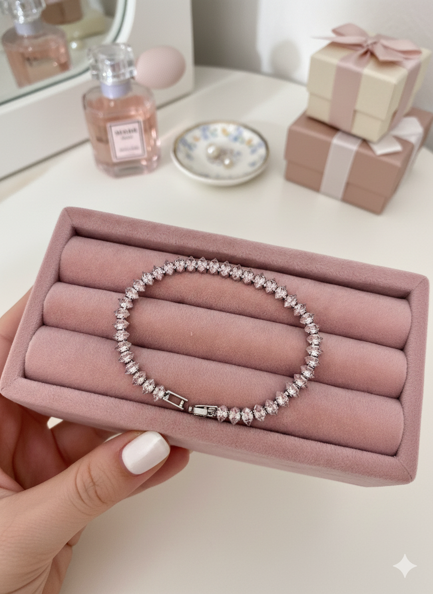Designed for both everyday wear and special occasions, the bracelet is waterproof, tarnish-free, and hypoallergenic, ensuring comfort and long-lasting radiance.