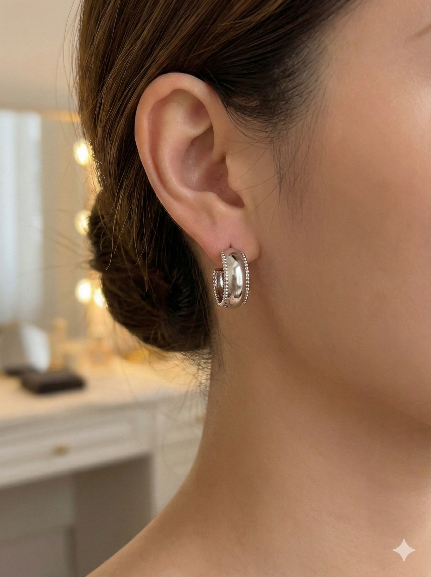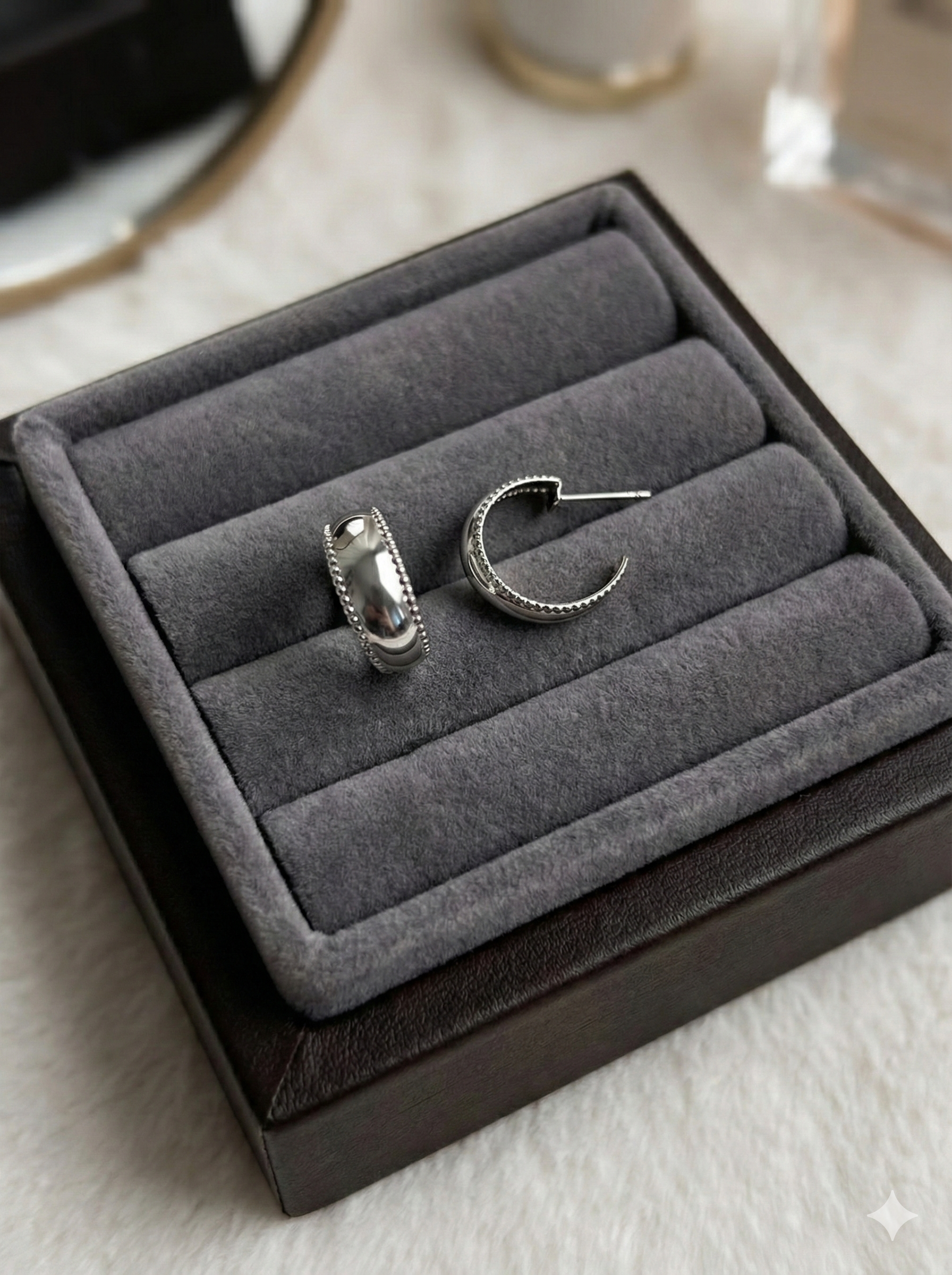Meet your new everyday essential: stainless steel minimalist hoop earrings designed for style, comfort, and long-lasting shine. This sleek duo features a smooth chunky hoop paired with a delicate dotted-edge hoop — perfect for mixing, matching, and stacking.