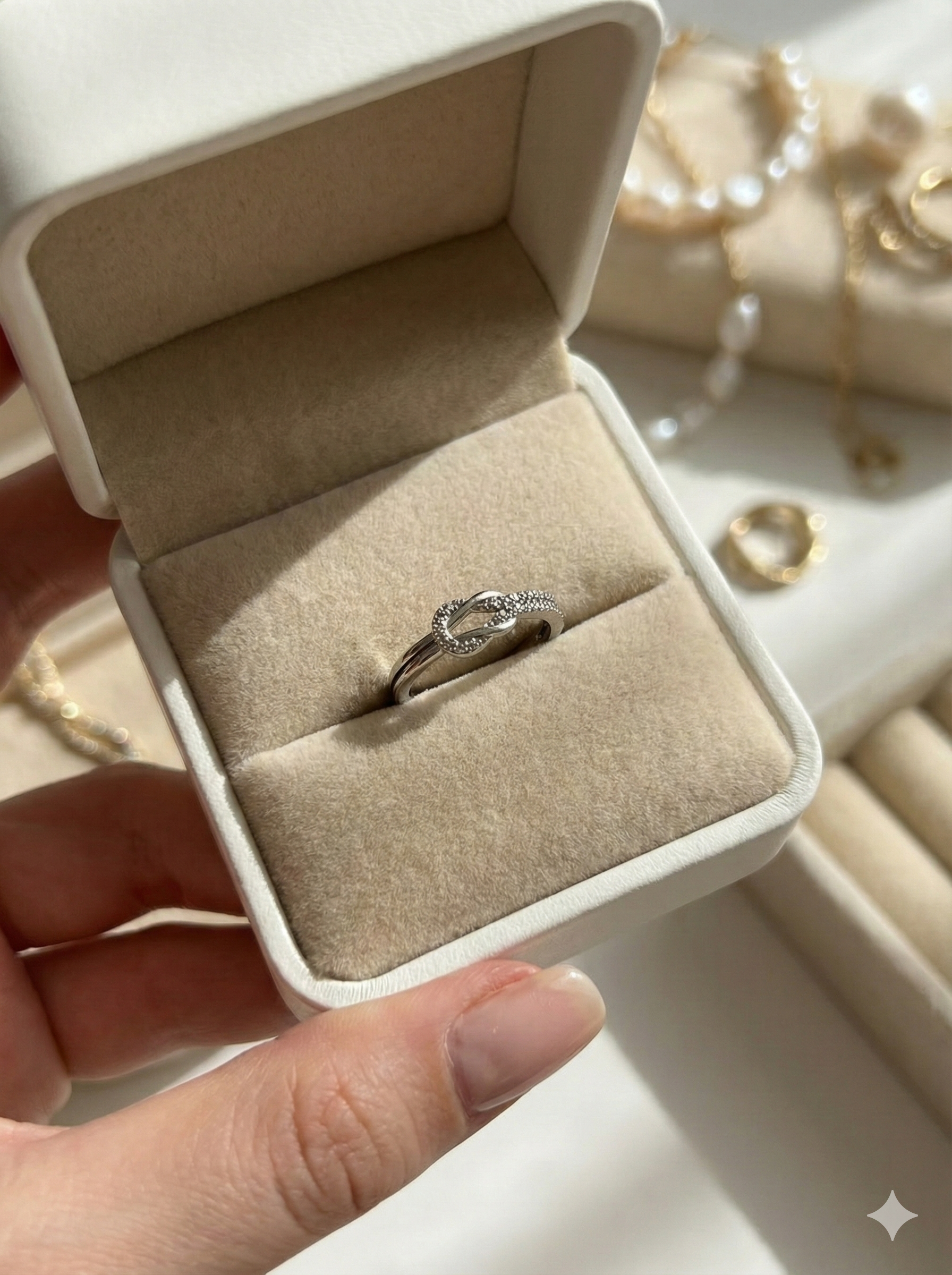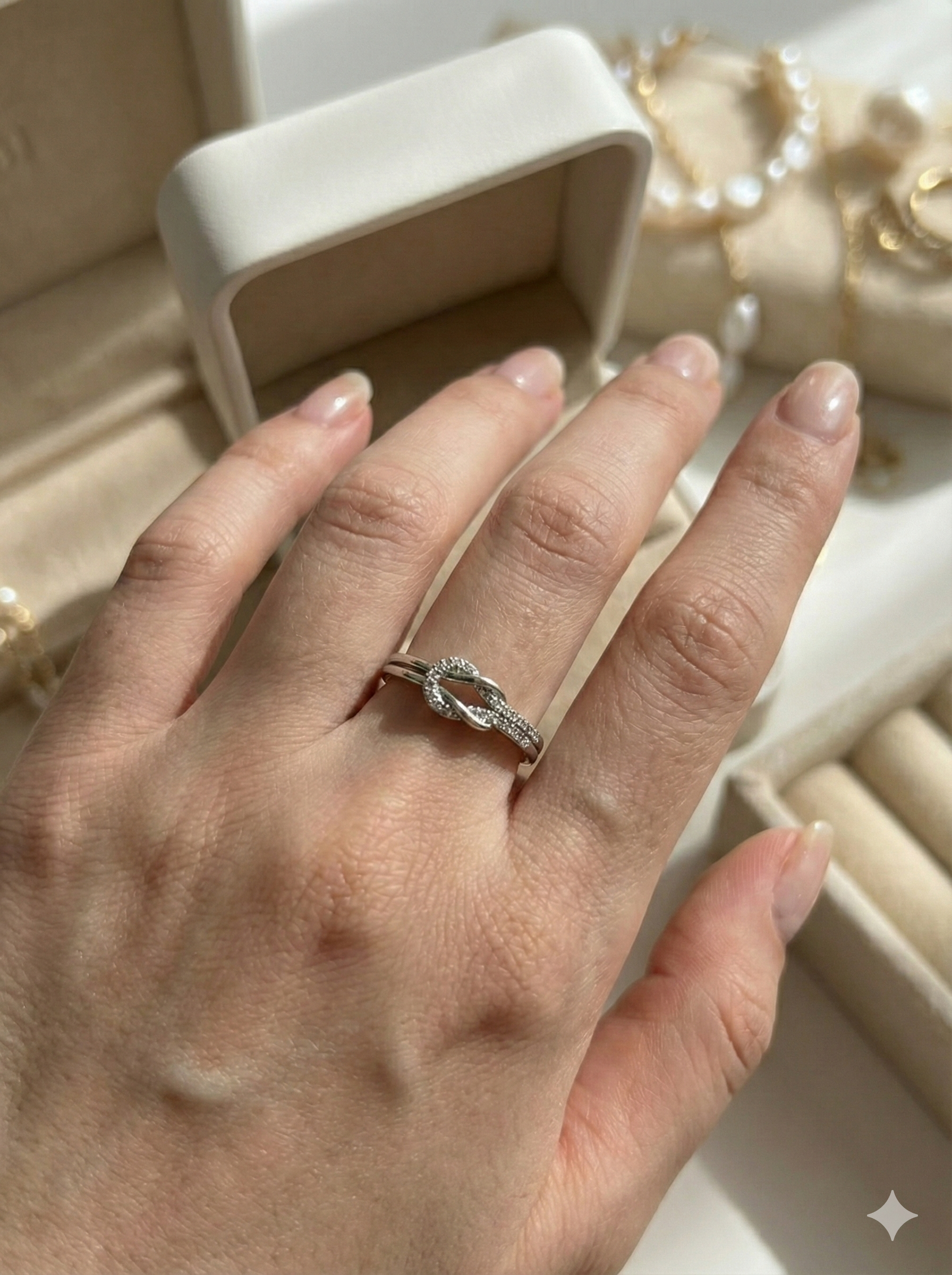 Sterling Silver Knot Ring | Dainty Pavé Knot Band | Minimalist Promise Ring | Waterproof