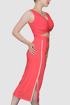 no.2 Top Set-Dress SideLined / Coral Pink I White